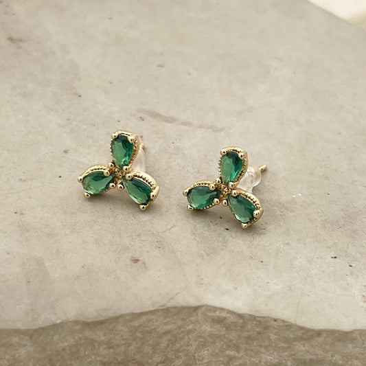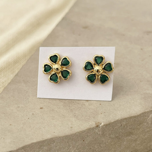 Emerald Flower Stud Earrings