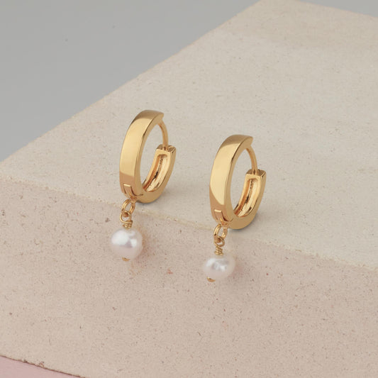 Hoop Pearl Huggie Earrings